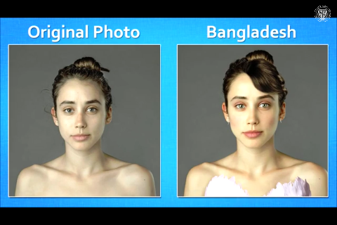 A journalist named Esther Honig started a project that she named, Before and After, this examines how the world wide standards of beauty from the differing cultures vary. Through the internet, Esther, was able to contact around 40 people in 25 different places. And proposed that these people Photoshop a picture of Esther into what they perceived as beautiful and send it back to her. She got more than enough results. Some people where professionals and other amateurs. These are the pictures that I found on this study.